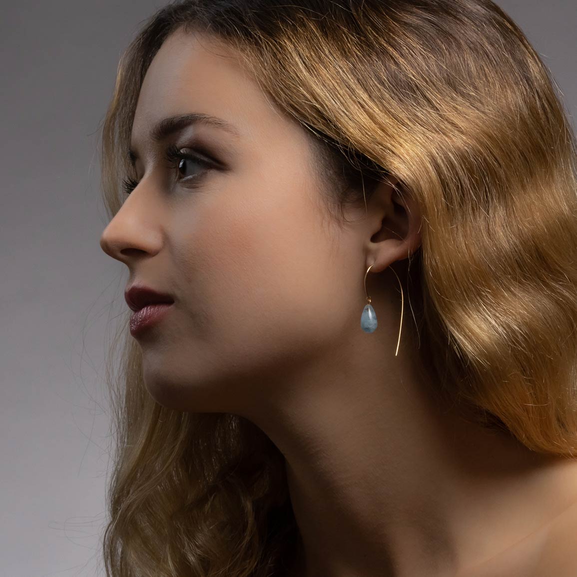 Boucles d’Oreilles Virgule C Aigue-Marine