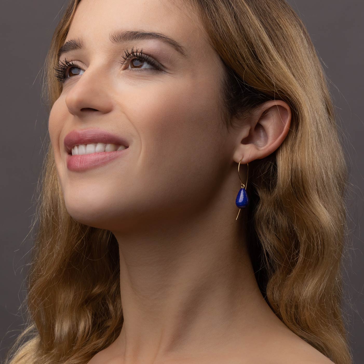 Boucles d’Oreilles en Or Jaune 750‰ et Lapis Lazuli.