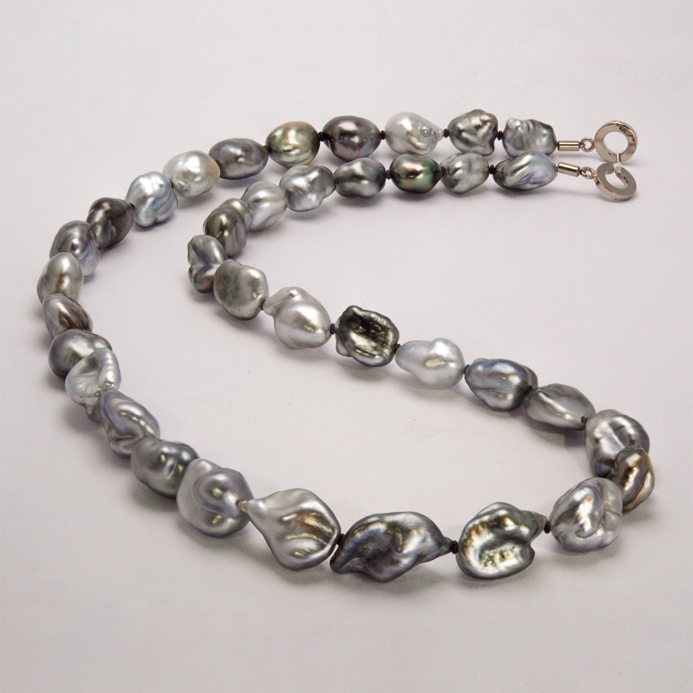 Collier en Or Blanc 750‰, Perles Keshi de Tahiti